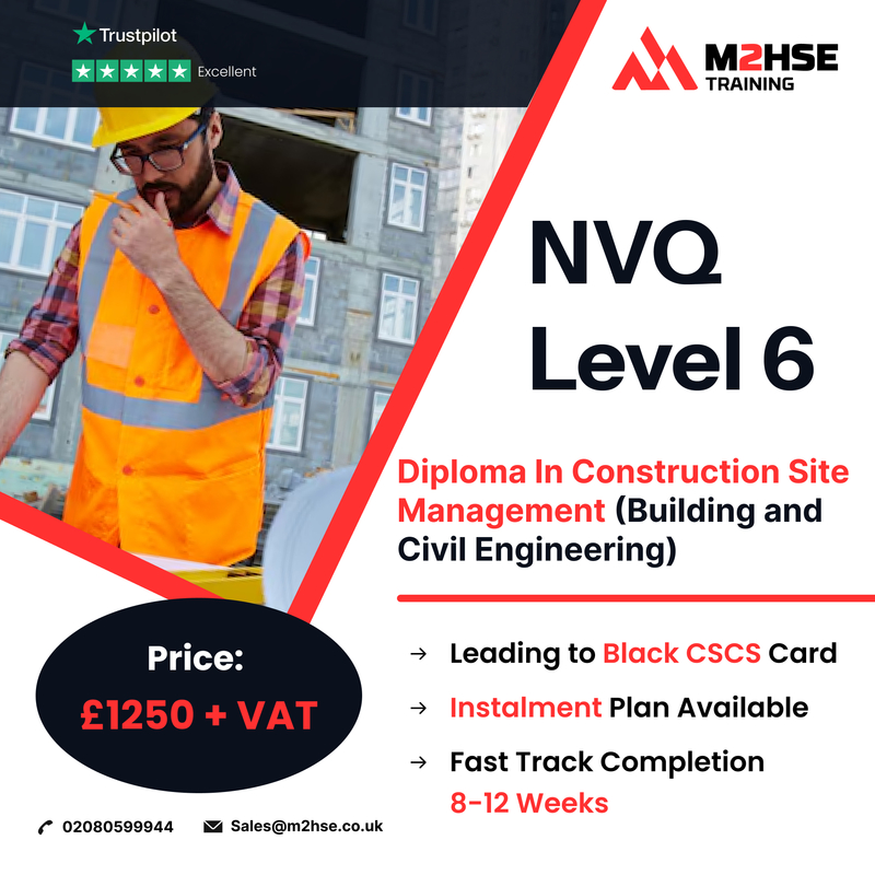 The NVQ Level 6 Diploma in Construction Site Management is delivered by M2HSE Training, a trusted CITB approved training provider of industry-recognized qualifications. With a focus on flexibility, professional support, and real-world assessment, M2HSE Training ensures that experienced professionals gain the formal recognition they deserve to move confidently into senior roles. Choose us and start your NVQ journey with us today. Training to take the next step in your construction leadership journey.